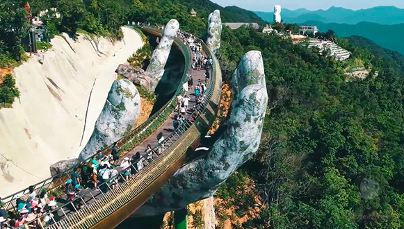 Cầu Vàng với bàn tay khổng lồ ở vườn Thiên Thai Đà Nẵng