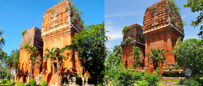 Thăm quan Tháp Đôi: cụm tháp với 02 ngọn tháp cổ có lối kiến trúc Angkor, được xây dựng từ thế kỷ thứ XII nằm trên bình diện phẳng ngay trong lòng thành phố Quy Nhơn, Tỉnh Bình Định.